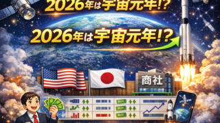 2026年は「宇宙元年」?宇宙関連株が急騰する理由を、国防宇宙(SDA)・D2D(衛星→スマホ)・SpaceXの3視点で解説。米国・国内・商社の比較表つきで目的別に銘柄候補も整理します。
