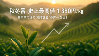 コラム 静岡茶市場で「いくらなんでも高すぎる」—秋冬番の初荷が史上最高値1,380円(前年の4倍)。なにが起きた?何がすごい?メリットは?